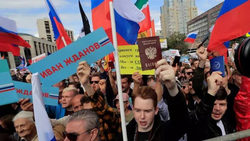 പ്രതിപക്ഷ സ്ഥാനാര്ഥികള്ക്ക് മത്സരവിലക്കിനെതിരെ റഷ്യയില് വന് പ്രതിഷേധ പ്രകടനം