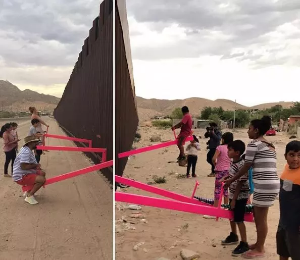 ട്രംപിന്റെ അമേരിക്കന് ഭരണകൂടം യു.എസ് മെക്സിക്കോ അതിര്ത്തിയില് വേര്തിരിവിന്റെ മതില് കെട്ടിപ്പൊക്കുമ്പോള് മതിലുകള്ക്കിടയിലൂടെ സൗഹൃദം തീര്ക്കുകയാണ് ഈ പിങ്ക് സീസോകള്