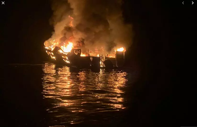 ദക്ഷിണ കാലിഫോർണിയ തീരത്ത് നിന്ന് യാത്ര തിരിച്ച ബോട്ടിനാണ് തിങ്കളാഴ്ച തീ പിടിച്ചത്