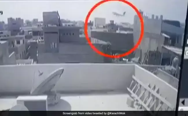 പാകിസ്താന് വിമാനം തകര്ന്ന് വീഴുന്നതിന്റെ സിസിടിവി ദൃശ്യങ്ങള് പുറത്ത്