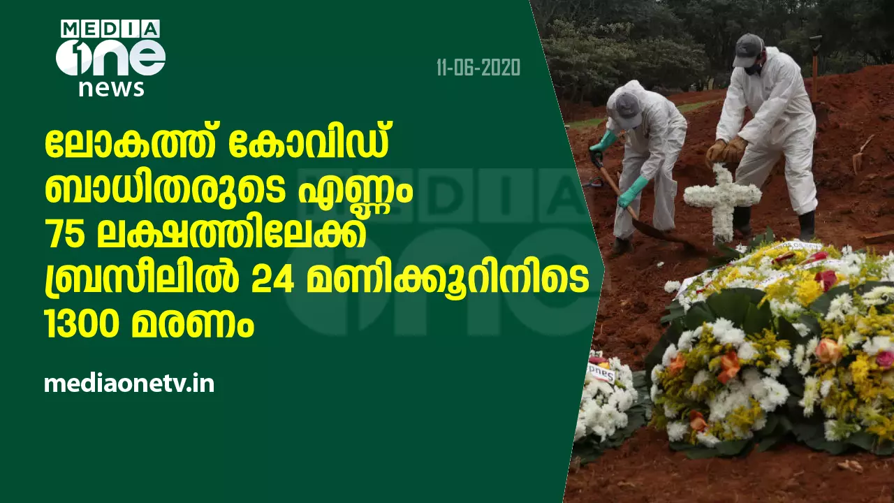 ലോകത്ത് കോവിഡ് ബാധിതരുടെ എണ്ണം 75 ലക്ഷത്തിലേക്ക്; ബ്രസീലില് 24 മണിക്കൂറിനിടെ 1300 മരണം