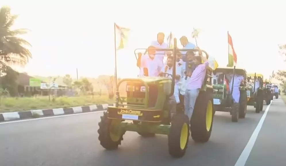 ട്രാക്ടറുകളുമായി കർഷകരും സമരത്തിന്റെ ഭാഗമായി കാർഷിക പരിഷ്കരണ നിയമത്തിനെതിരെ ശക്തമായ സമരം തുടരുമെന്ന് യൂത്ത് കോൺഗ്രസ് സംസ്ഥാന പ്രസിഡന്റ് ഷാഫി പറമ്പിൽ എം.എൽ.എയും, വൈസ് പ്രസിഡന്റ് ശബരീനാഥൻ എം.എൽ.എയും പറഞ്ഞു. കുഴൽമന്ദം മുതൽ പാലക്കാട് കോട്ടമൈതാനം വരെയാണ് മാർച്ച് നടന്നത്. യൂത്ത് കോൺഗ്രസ് അഖിലേന്ത്യ പ്രസിഡന്റ് ബി.വി. ശ്രീനിവാസൻ പൊതുസമ്മേളനത്തിൽ പങ്കെടുത്തു.