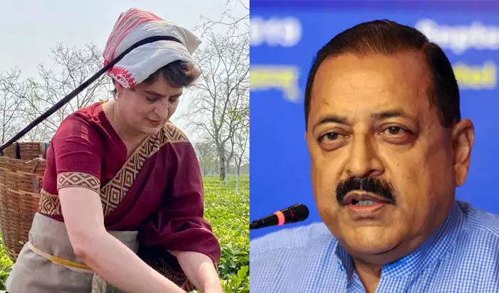 ന്യൂഡൽഹി: അസമിൽ കർഷകർക്കൊപ്പം തേയില നുള്ളിയ കോൺഗ്രസ് നേതാവ് പ്രിയങ്ക ഗാന്ധിയെ പരിഹസിച്ച് കേന്ദ്രമന്ത്രി ജിതേന്ദ്രസിങ്. ഇതെന്താ സിനിമാ ഷൂട്ടാണോ എന്നായിരുന്നു മന്ത്രിയുടെ പരിഹാസം.