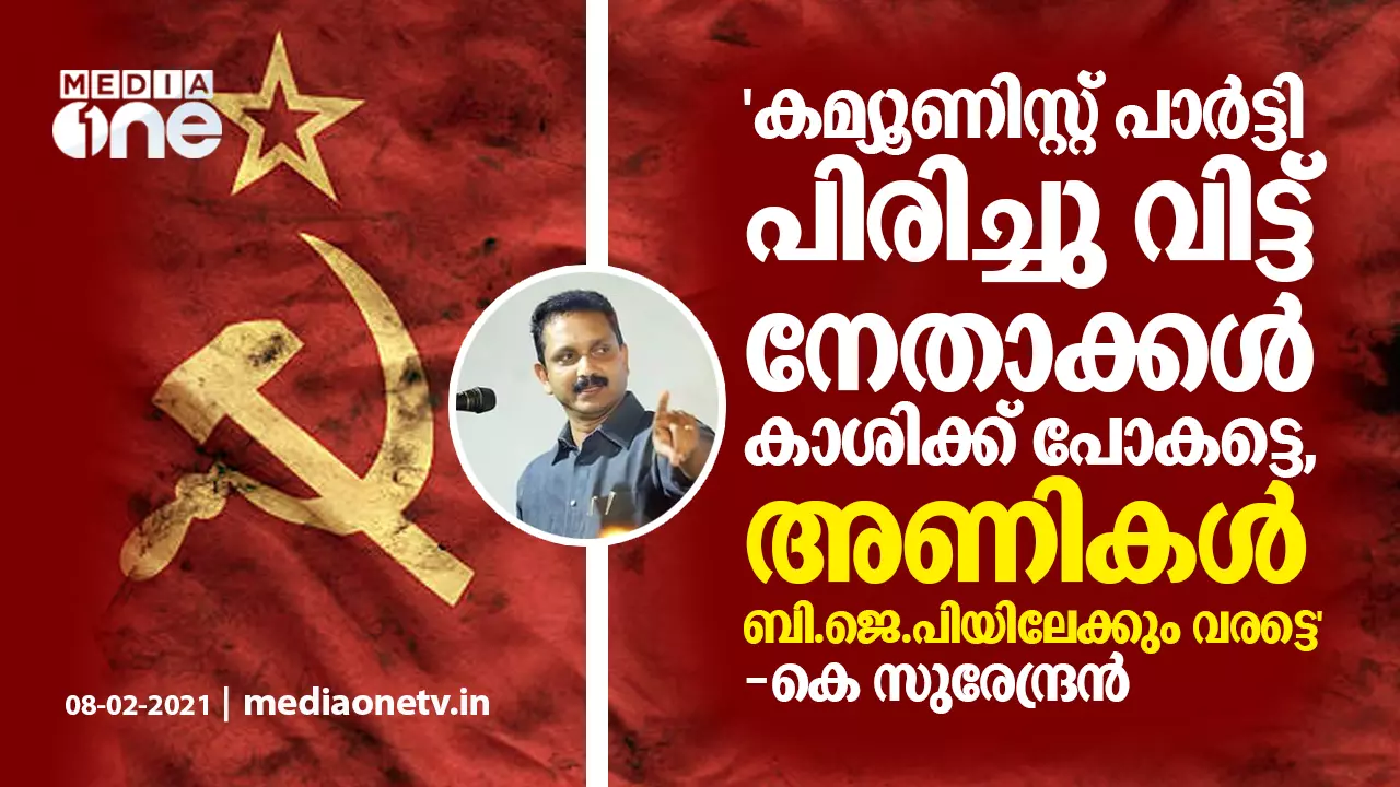 'കമ്യൂണിസ്റ്റ് പാർട്ടി പിരിച്ചു വിട്ട് നേതാക്കൾ കാശിക്ക് പോകണം, അണികൾ ബി.ജെ.പിയിലേക്കും വരട്ടെ' കെ സുരേന്ദ്രന്