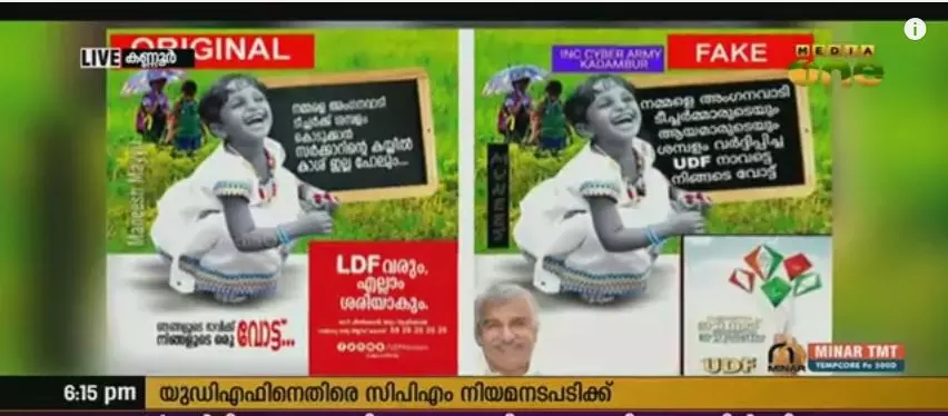 ഡിവൈഎഫ്ഐ നേതാവിന്റെ മകളുടെ ഫോട്ടോ ഉപയോഗിച്ച് ഫേസ്ബുക്കില് യുഡിഎഫിന്റെ പേരില് പ്രചാരണ പോസ്റ്റര് പ്രചരിപ്പിച്ചതിനെതിരെ സിപിഎം നിയമനടപടിക്ക്.
