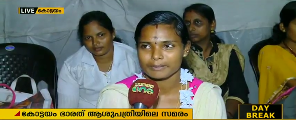 കോട്ടയം ഭാരത് ആശുപത്രിയില് നഴ്സുമാരുടെ നിരാഹാര സമരം