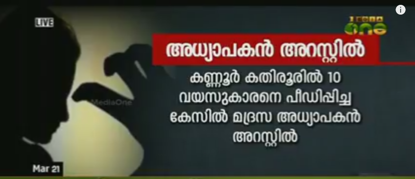 കണ്ണൂരിൽ 10 വയസുകാരനെ പീഡിപ്പിച്ച മദ്രസ അധ്യാപകൻ അറസ്റ്റിൽ