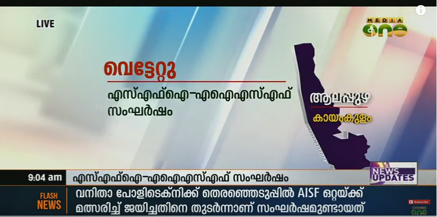 കായംകുളം വനിതാ പോളിടെക്നിക്ക് തെരഞ്ഞെടുപ്പില് എഐഎസ്എഫ് ഒറ്റയ്ക്ക് മത്സരിച്ച് ജയിച്ചതിനെ തുടര്ന്നാണ് സംഘര്ഷം