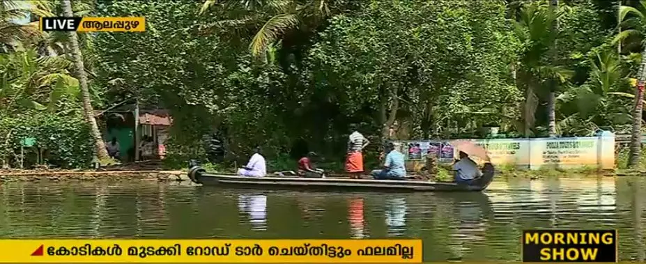 മന്ത്രി തോമസ് ചാണ്ടിയുടെ റിസോര്ട്ടിന് മുന്നിലൂടെ റോഡ് നിർമിച്ചതുമായി ബന്ധപ്പെട്ട വിവാദം മുറുകുമ്പോൾ മന്ത്രിയുടെ മണ്ഡലത്തിൽ തന്നെയുള്ള ആലപ്പുഴ കൈനകരിയിലെ കരുവാറ്റ കുപ്പപ്പുറം റോഡിന്റെ അവസ്ഥ പരിതാപകരമായി തുടരുന്നു. കോടികള് മുടക്കി റോഡ് ടാര് ചെയ്തെങ്കിലും രണ്ടു പാലങ്ങള്ക്കായുള്ള പ്രദേശത്തുകാരുടെ കാത്തിരിപ്പ് 45 വര്ഷം പിന്നിടുകയാണ്.