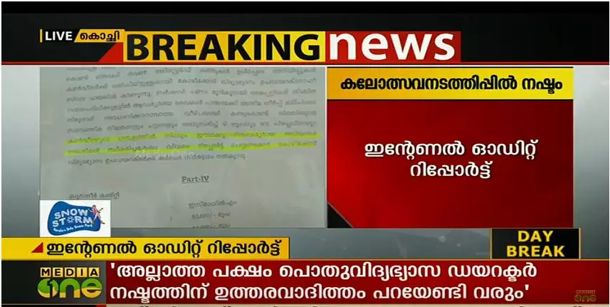 മുൻ വർഷങ്ങളിൽ സംസ്ഥാന സ്കൂൾ കലോത്സവ നടത്തിപ്പുമായി ബന്ധപ്പെട്ട് സർക്കാരിന് ലക്ഷക്കണക്കിന് രൂപയുടെ നഷ്ടമെന്ന് ഇന്റേണൽ ഓഡിറ്റ് റിപ്പോർട്ട്. ചുമതലക്കാരായ സബ് കമ്മറ്റി കൺവീനർമാരിൽ നിന്ന് നഷ്ടം വന്ന തുക തിരിച്ച് പിടിക്കാത്ത പക്ഷം പൊതുവിദ്യാഭ്യാസ ഡയറക്ടർ എല്ലാ നഷ്ടത്തിനും ഉത്തരവാദിത്തം പറയേണ്ടി വരുമെന്ന് ഓഡിറ്റ് റിപ്പോർട്ട് പറയുന്നു. പാലക്കാട്, കോഴിക്കോട് കലോത്സവങ്ങളുടെ ഇന്റേണൽ ഓഡിറ്റ് റിപ്പോർട്ടിന്റെ പകർപ്പ് മീഡിയവണിന് ലഭിച്ചു.