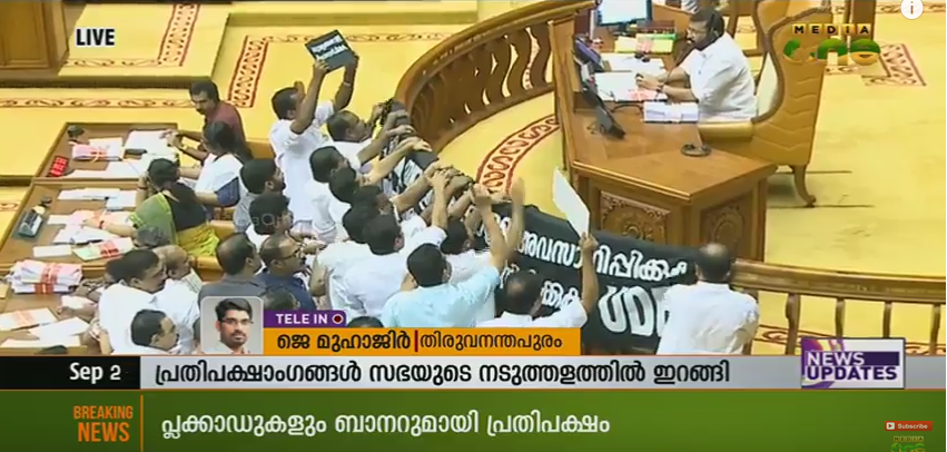 പ്രതിപക്ഷത്തിന്റെ താല്പര്യം സംരക്ഷിക്കുന്നതില് സ്പീക്കര് പരാജയപ്പെട്ടെന്ന് പ്രതിപക്ഷ നേതാവ് രമേശ് ചെന്നിത്തല ആരോപിച്ചു. സ്പീക്കറുടെയും മുഖ്യമന്ത്രിയുടെയും നിലപാട് തെറ്റാണെന്നും പ്രതിപക്ഷ നേതാവ് കുറ്റപ്പെടുത്തി. അനാവശ്യമായ പ്രകോപനമാണ് ഇന്നലെ മുഖ്യമന്ത്രി സഭയില് സൃഷ്ടിച്ചതെന്ന് ഉമ്മന്ചാണ്ടിയും ആരോപിച്ചു.