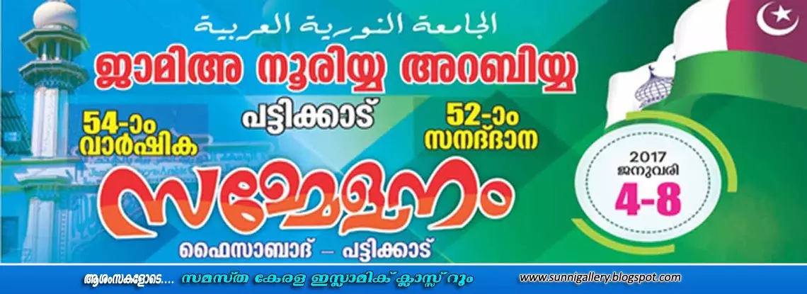 മലപ്പുറം പട്ടിക്കാട് ജാമിഅ നൂരിയ്യ അറബി കോളേജിന്റെ അന്പത്തിനാലാം വാര്ഷിക സമ്മേളനം ഞായറാഴ്ച സമാപിക്കും. 207 വിദ്യാര്ത്ഥികള്ക്ക് സമ്മേളനത്തില് സനദ് സമ്മാനിക്കും.
