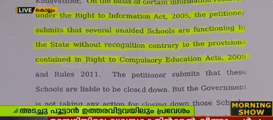 സംസ്ഥാനത്ത് അംഗീകാരമില്ലാതെ പ്രവർത്തിക്കുന്ന 1500 സ്കുളുകൾ അടച്ച് പൂട്ടാൻ നേരത്തെ പൊതു വിദ്യാഭ്യാസ ഡയറക്ടർ കെ.വി മോഹൻ കുമാർ ഉത്തരവിട്ടിരുന്നു.ഇതിന്റെ അടിസ്ഥാനത്തിൽ കൊല്ലം ജില്ലയിൽ മാത്രം 47 സ്കൂളുകള ബന്ധപ്പെട്ട എഇഒ മാർ നോട്ടിസ് നൽകിയത്. എന്നാൽ ഇതിൽ പകുതിയിലധികം സ്കുളുകൾ ഇത്തവണയും പ്രവേശം നടത്തി. വെളിയം സമ്പ് ജില്ലയിലാണ് ഏറ്റവും അധികം സ്കൂളുകൾ തുറന്ന് പ്രവർത്തിക്കുന്നത്. ഈ സ്കൂളുകള് അടച്ച് പൂട്ടുവാന് നടപടി സ്വീകരിച്ചിട്ടുണ്ടെന്നാണ് നേരത്ത സര്ക്കാര് അഭിഭാഷകന് ഹൈക്കോടതിയില് മറുപടി നല്കിയിരുന്നത്. എന്നാൽ പൊതു വിദ്യഭ്യാസ വകുപ്പിന്റെ ഉത്തരവിന് മുകളിൽ തങ്ങൾ സ്റ്റേ വാങ്ങിയിട്ടുണ്ടെന്നാണ് മാനേജ്മെന്റുകളുടെ വിശദീകരണം. സ്കുളുകൾ നല്ല രീതിയിലാണ് പ്രവർത്തിക്കുന്നതെന്ന് മാനേജ്മെന്റുകൾ അവകാശപ്പെടുന്നു.