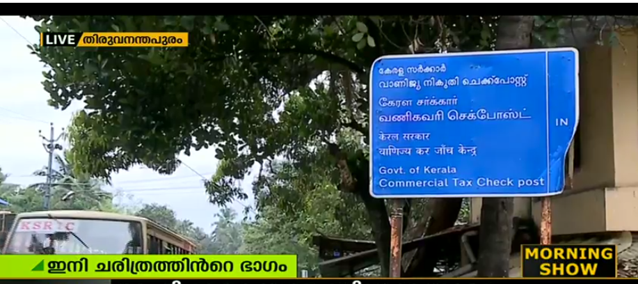 വാണിജ്യ നികുതി ചെക്ക് പോസ്റ്റുകള് വിസ്മൃതിയിലേക്ക്; ഇന്ന് അര്ധ രാത്രി മുതല് അടച്ച് പൂട്ടും