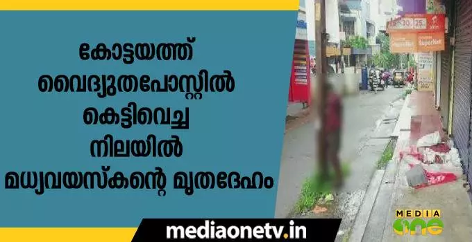 കോട്ടയത്ത് വൈദ്യുതപോസ്റ്റില് കെട്ടിവെച്ച നിലയില് മധ്യവയസ്കന്റെ മൃതദേഹം