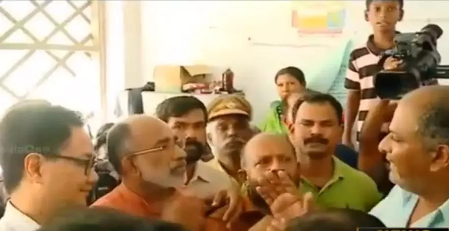 കോട്ടയം ജില്ലയില് ചെങ്ങളത്തെ ദുരിതാശ്വാസ ക്യാമ്പിലാണ് കേന്ദ്രമന്ത്രിമാരായ കിരണ് റിജുജുവും അല്ഫോണ്സ് കണ്ണന്താനവും അടങ്ങുന്ന സംഘം ആദ്യം എത്തിയത്. മൂന്ന് മണിക്ക് ഇവിടെ എത്തിയ മന്ത്രിമാര് അഞ്ച് മിനിറ്റ് പോലും അവിടെ നില്കാതെ ഉദ്യോഗസ്ഥരെ മാത്രം കണ്ടശേഷം കുമരകത്തേക്ക് തിരിച്ചു. പരാതി കേള്ക്കാതെ മന്ത്രിമാര് പോയതോടെ ക്യാമ്പിലുണ്ടിയിരുന്നവര് പ്രതിഷേധവുമായി എത്തി.