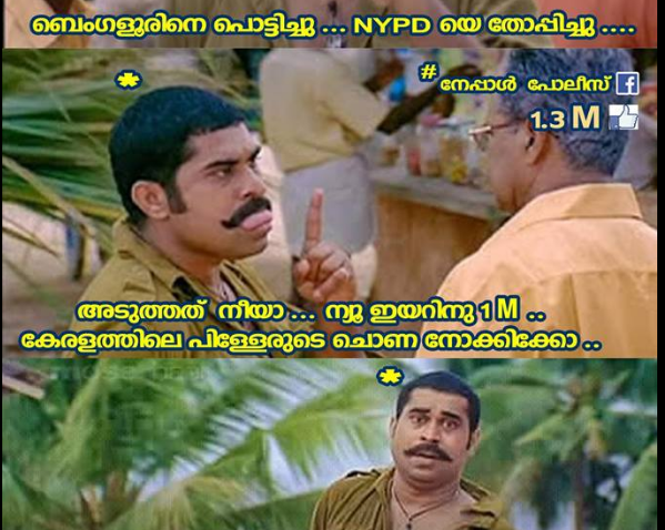 ये à¤à¥€ पà¥�ें- അടിച്ചു മോനേ..ബാംഗ്ലൂര് സിറ്റി പൊലീസിന്റെ ഫേസ്ബുക്ക് പേജിനെ മറികടന്ന് കേരള പൊലീസ് ഒന്നാമത്