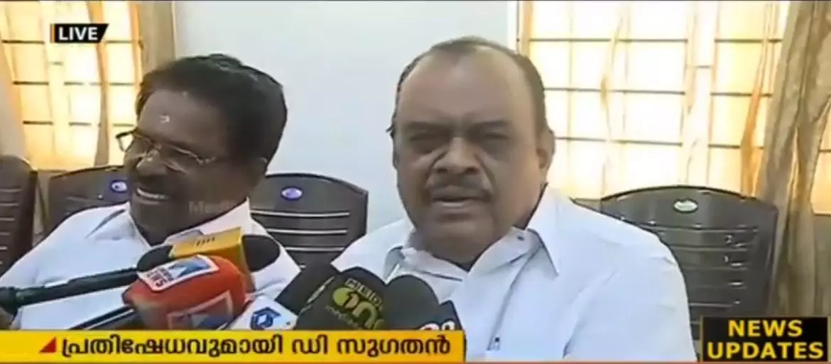 സുധീരന് വെള്ളാപ്പള്ളിയെ വിമര്ശിച്ചതില് പ്രതിഷേധം; ഡി.സുഗതന് ഇറങ്ങിപ്പോയി