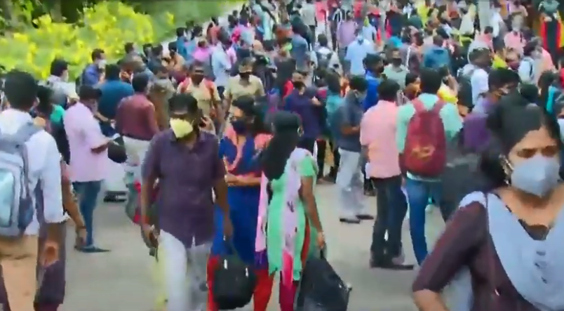 തിരുവനന്തപുരം കോർപ്പറേഷൻ തെരഞ്ഞെടുപ്പിനുള്ള പോളിംഗ് സാമഗ്രികൾ വിതരണം ചെയ്യുന്ന സർവോദയ സ്കൂളിൽ രാവിലെ 8 മണി മുതൽ തന്നെ ഉദ്യോഗസ്ഥരുടെ വലിയ തിരക്കായിരുന്നു. ഇവരെ നിയന്ത്രിക്കാൻ വേണ്ടത്ര പൊലീസുകാരും ഇല്ലായിരുന്നു. കോവിഡ് പശ്ചാത്തലത്തിൽ വിഷയം റിട്ടേണിംഗ് ഓഫീസറുടെ ശ്രദ്ധയിൽപെടുത്തിയപ്പോൾ സ്വഭാവികമായി ഉണ്ടാകുന്ന തിരക്കെന്നായിരുന്നു മറുപടി. പോളിങ് സാമഗ്രികൾ വിതരണം ചെയ്യുന്ന കേന്ദ്രങ്ങളിൽ അടിസ്ഥാന സൗകര്യങ്ങൾ ഒരുക്കിയില്ലെന്ന് പോളിങ് ഓഫീസർമാർ മീഡിയവണിനോട് പറഞ്ഞു.