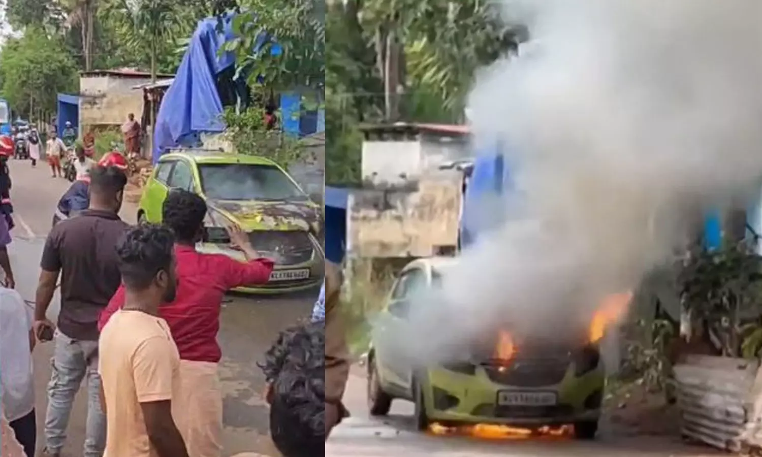 കാറിൽ നിന്ന് പുക ഉയരുന്നത് കണ്ട നാട്ടുകാർ ബഹളം വെച്ചതോടെ ഡ്രൈവർ വാഹനത്തിൽ നിന്ന് പുറത്തിറങ്ങിയത് അപകടം ഒഴിവാക്കി.