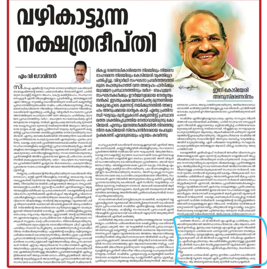 അൻവർ ഉന്നയിച്ചതിൽ ചിലത് അടിസ്ഥാനരഹിതമായ ആരോപണങ്ങളാണ്. സാമാന്യ മര്യാദ പാലിക്കാതെയാണ് പരസ്യപ്രസ്താവന നടത്തിയത്. പാർട്ടിക്കും, മുഖ്യമന്ത്രിക്കും, ഇടതുപക്ഷത്തിനും, എതിരെ നീങ്ങുകയാണ് അദ്ദേഹം. ഇതിലൂടെയൊന്നും പാർട്ടിയേയും സർക്കാരിനെയും തകർക്കാൻ ആവില്ലെന്നും സെക്രട്ടറി ലേഖനത്തിൽ പറഞ്ഞു. കോടിയേരി ബാലകൃഷ്ണൻ അനുസ്മരണത്തിന്റെ ഭാഗമായി എഴുതിയ ലേഖനത്തിന്റെ അവസാന ഭാഗത്താണ് അൻവറിനെതിരായ വിമർശനം സെക്രട്ടറി എഴുതിയത്.