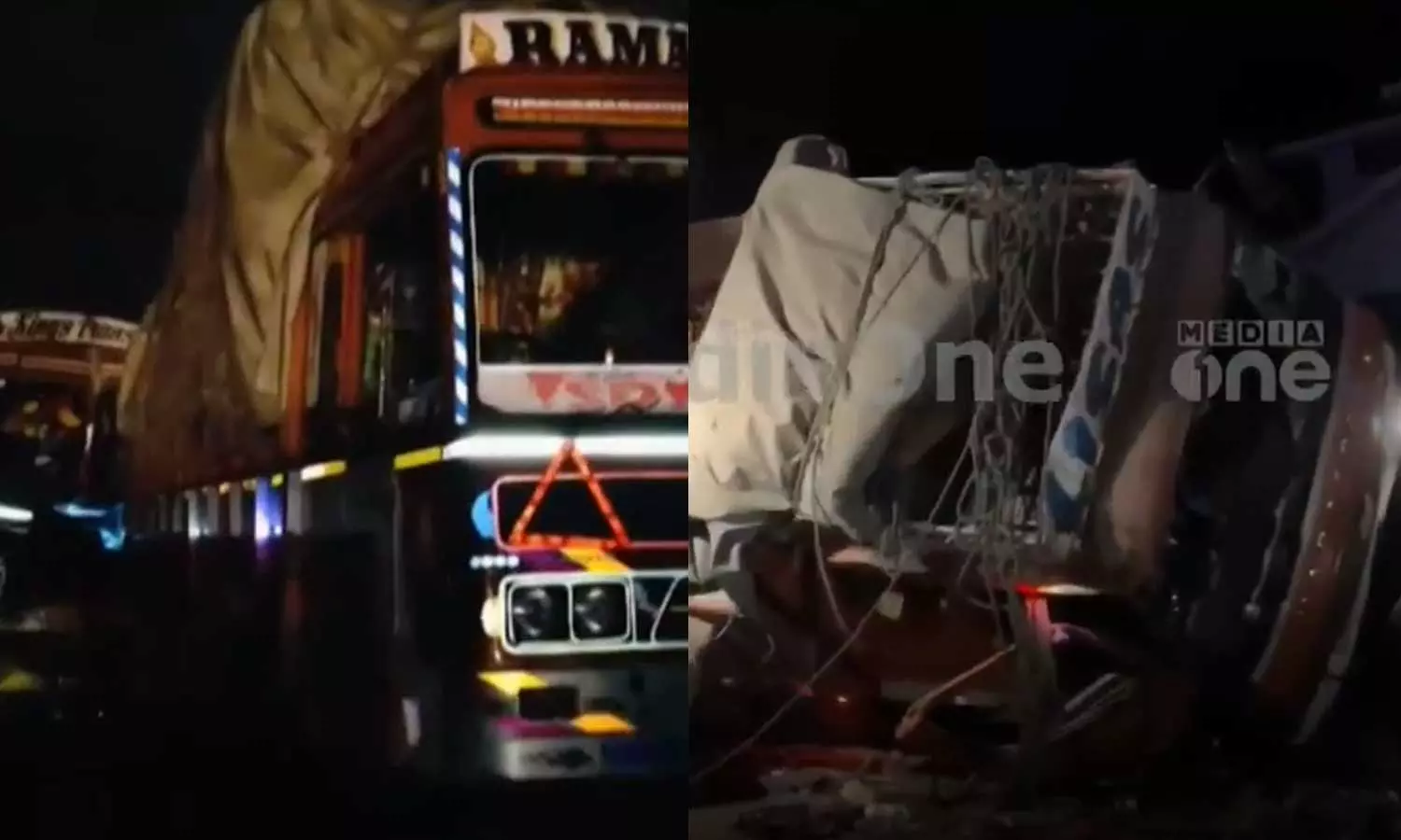 ഇന്ന് പുലർച്ചെ രണ്ടു മണിയോടെയാണ് അപകടം. ഇടിച്ച ലോറിയുടെ ഡ്രൈവർ സ്ഥലത്തുനിന്ന് കടന്നുകളഞ്ഞു. ഇടിയുടെ ആഘാതത്തിൽ വാഹനങ്ങൾ തകർന്നു.