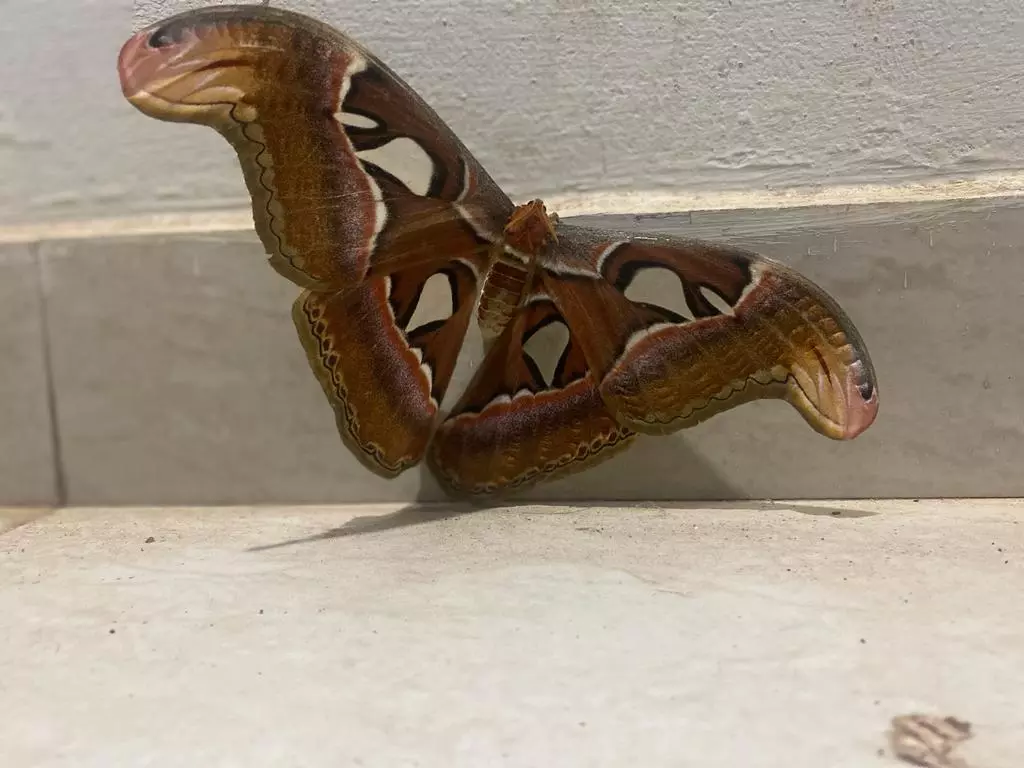ലോകത്തിലെ വലിപ്പമേറിയ നിശാ ശലഭങ്ങളിലൊന്നായ അറ്റ്ലസ് മോത്ത് ഓമശ്ശേരി വാദി ഹുദയിൽ