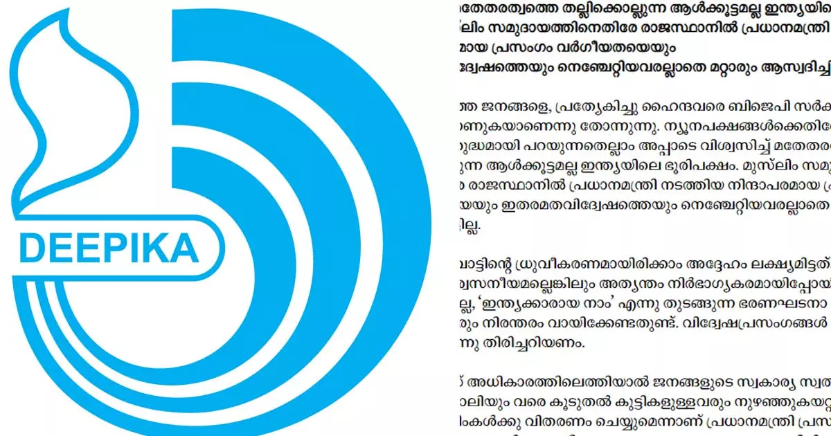 മോദി മുസ്ലിംകള്ക്കെതിരെ നടത്തിയത് നിന്ദാപരമായ പ്രസംഗം; പ്രധാനമന്ത്രിയുടെ വിദ്വേഷ പ്രസംഗത്തിനെതിരെ ദീപിക മുഖപ്രസംഗം