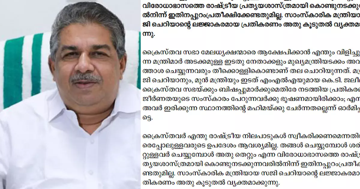 സഭാ മേലധ്യക്ഷൻമാരെ വിമർശിക്കാൻ മന്ത്രിമാർ എന്തും വിളിച്ചു പറയുന്നു