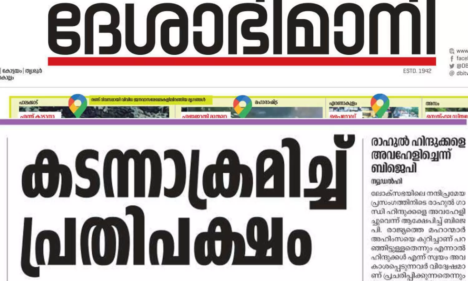 ലോക്സഭയിൽ മോദിക്കും ബി.ജെ.പിക്കും എതിരെ രാഹുൽഗാന്ധി നടത്തിയ തീപ്പൊരി പ്രസംഗം കാണാതെ ദേശാഭിമാനി