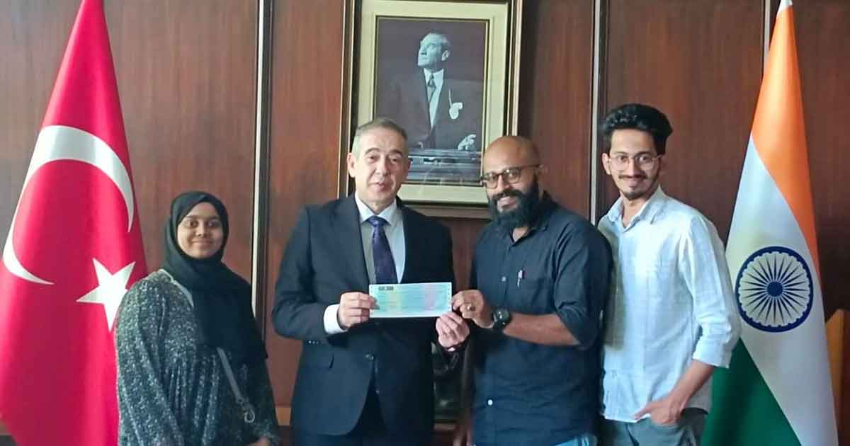 സഹായധനം ഫ്രറ്റേണിറ്റി മൂവ്മെന്റ് ദേശീയ ജനറൽ സെക്രട്ടറി ലുബൈബ് ബഷീറിന്റെ നേതൃത്വത്തിൽ ഡൽഹിയിലെ തുർക്കി എംബസി ഓഫിസിൽ വെച്ച് ഇന്ത്യയിലെ തുർക്കി വിദേശകാര്യ പ്രതിനിധി ഫിറാത്ത് സുനാലിന് കൈമാറി. ഫ്രറ്റേണിറ്റി മൂവ്മെന്റ് നേതാക്കളായ നുഹ മറിയം, മൻഷാദ് മനാസ് എന്നിവർ പങ്കെടുത്തു.