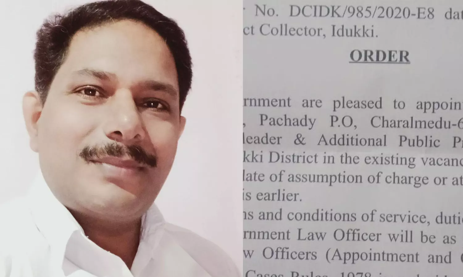 ഇടുക്കി ജില്ലയിലെ ബി ജെ പി ജില്ലാ നേതാവ് പി.കെ വിനോജ് കുമാറിനെയാണ് സർക്കാർ അഭിഭാഷകനായി നിയമിച്ചത്