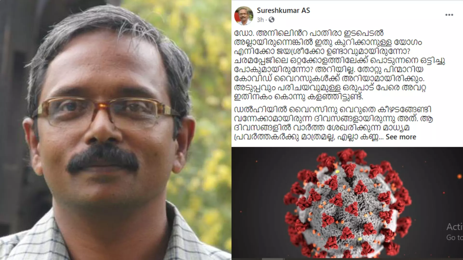 ആ ദിവസങ്ങൾ എങ്ങനെയാണ് തള്ളി നീക്കിയത്? കോവിഡ് അനുഭവം പങ്കുവെച്ച് മാധ്യമപ്രവര്ത്തകന് എ.എസ്. സുരേഷ്കുമാർ