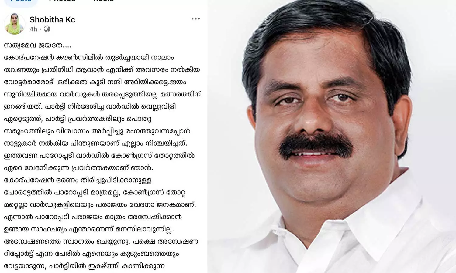 കെ.സി ശോഭിതയുടെ ഫേസ്ബുക്ക് പോസ്റ്റ്; വിശദീകരണം തേടുമെന്ന് കോഴിക്കോട് ഡിസിസി പ്രസിഡൻ്റ്