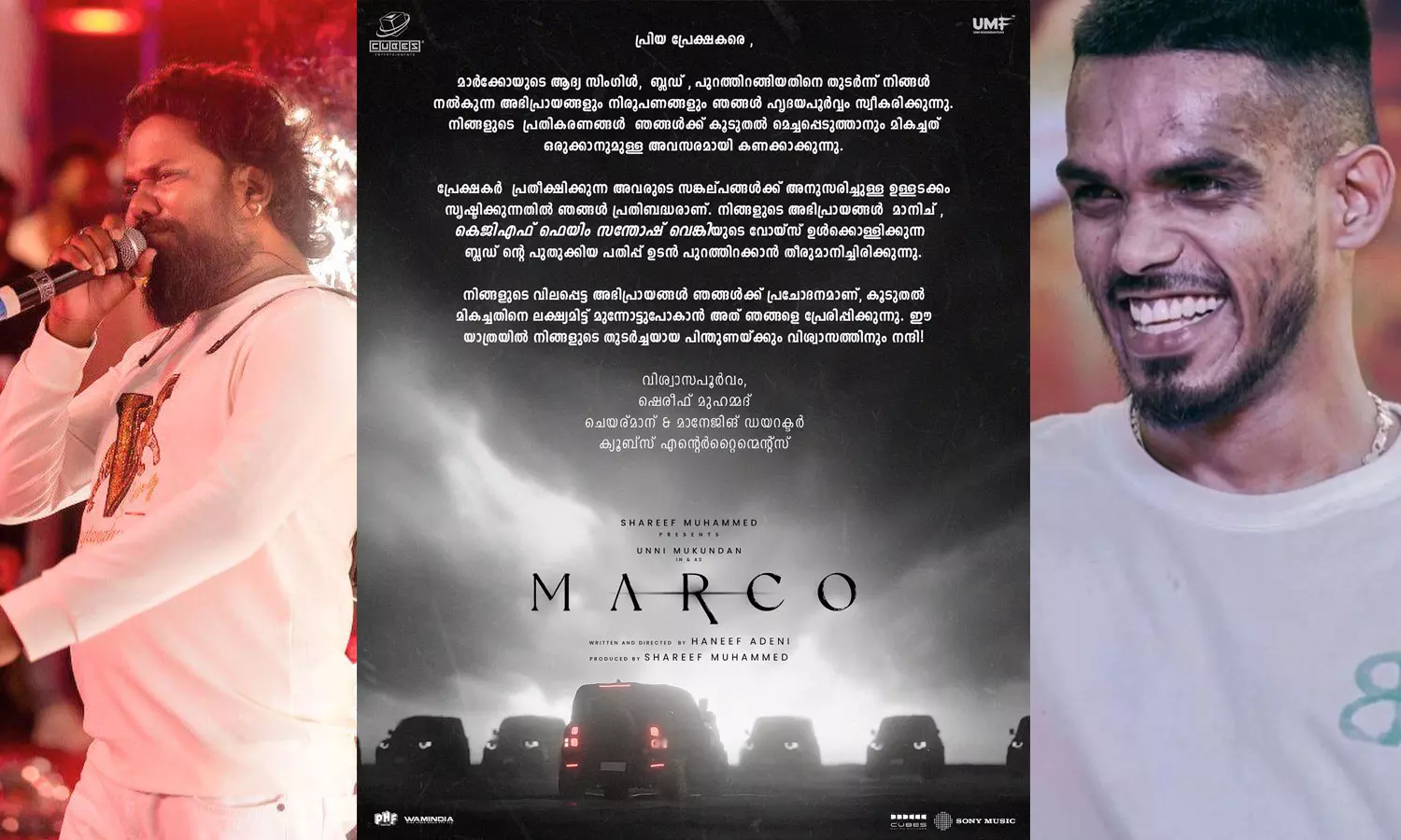 അത് സോങ്ങ് ൻ്റെ പ്രി റെക്കോഡിങ് ഓഡിയോ ആണ് എന്നത് എനിക് ഉറപ്പിച്ച് പറയാൻ കഴിയും, ആ ശബ്ദം Ai ഒക്കെ റീഡിസൈൻ ചെയ്ത് എടുത്തത് ആണ് എന്ന് കേൾക്കുമ്പോൾ മനസ്സിലാകും. പാട്ടിൻ്റെ പ്രിപ്രൊഡക്ഷൻ വർക്കുകളിൽ എന്തോ തിരിമറി നടന്നിട്ടുണ്ട് അത് വ്യക്തമാക്കാതെ മനപ്പൂർവ്വം സോങ് റിലീസ് ചെയ്ത് ശേഷം , ശേഷം ആരൊക്കെയോ തമ്മിലുള്ള വ്യക്തി വൈരാഗ്യം തീർക്കുന്നത് പോലെ ആണ് ഇതിപ്പോ നടക്കുന്നത്. ഒരു കലാകാരനെ അവൻ്റെ ആവിഷ്കാരത്തെ ജനങ്ങൾ വെറുക്കുന്നു എന്ന രീതിയിൽ വാർത്തയെ വളച്ചൊടിച്ച് ഒരാളുടെ കഴിവിനെ ഇല്ലാതാകാൻ ശ്രമിക്കുകയാണ് , അതൊരിക്കലും സംഭവിക്കാൻ പോകുന്നില്ല ഒരു പക്ഷെ ഏതോ ഒരാളുടെ വ്യക്തി വൈരാഗ്യം അവിടെ ജയിച്ചിട്ടുണ്ടാവാം, പക്ഷെ കലാകാരനും അവൻ്റെ കഴിവുകൾക്കും അയാള് പരിശ്രമിക്കുന്നത്രയും അന്ത്യമുണ്ടാവില്ല. ഇത് പറയാൻ കാരണം. പാട്ടിലെ ഓഡിയോ ഇറർ നേ ക്കുറിച്ച് അവരുടെ ഒഫീഷ്യൽ പോസ്റ്റിൽ ഞാൻ കമൻ്റ് ചെയ്യുകയുണ്ടായി ഏതാനും നിമിഷങ്ങൾക്കകം ഈ കമൻ്റുകൾ അതിൽ നിന്നും റിമൂവ് ആവുകയും ചെയ്തു , അപ്പോൾ തന്നെ ഊഹിക്കാവുന്നതെ ഉള്ളൂ സത്യം ആരോ മറച്ച് വെക്കാൻ ശ്രമിക്കുന്നു എന്ന്, ഒരു കലാകാരനെ വിമർശിക്കുന്നത് ഒരിക്കലും തെറ്റല്ല പക്ഷെ അത് വ്യക്തമായ അടിസ്ഥാനത്തോടെ ആവണം , മാർക്കോ ഫസ്റ്റ് സിംഗിൾ ൻ്റെ ആദ്യത്തെ റിലീസ് സോങ്ങിൽ ഡബ്ജീയുടെ ശബ്ദം അത്രത്തോളം വികൃതമായി കേട്ടത് എന്തുകൊണ്ട് എന്ന് സംഗീതത്തിൻ്റെ അണിയറ പ്രവർത്തകർ വ്യക്തമായ റീസൺ നൽകണം. സാധാരണ ആൾക്കാരുടെ കണ്ണിൽ പൊടി ഇടാൻ എളുപ്പമാണ് , പക്ഷെ ഞാനടക്കം ഒരുപാട് ആളുകൾ ശബ്ദ മിശ്രണ മേഖലയിൽ വർക്ക് ചെയ്യുന്നുണ്ട്. അതുകൊണ്ട് വ്യക്തമായി പറയാൻ പറ്റും ഈ ഗാനത്തിൻ്റെ പ്രീ പ്രൊഡക്ഷൻ വർക്കിൽ വന്ന അപാകത ആണ് ഈ ഗാനത്തിൻ്റെ തകർച്ചയ്ക്ക് പിന്നിൽ. അത് ഒരു കലാകാരൻ്റെ മാത്രം തെറ്റായി ഉന്നയിക്കുന്നതും അത് അയാൾക്കെതിരെ ആയുധമായി മാറ്റുന്നതും ശെരിക്കും made up ആയി തന്നെ തോന്നുന്നു.