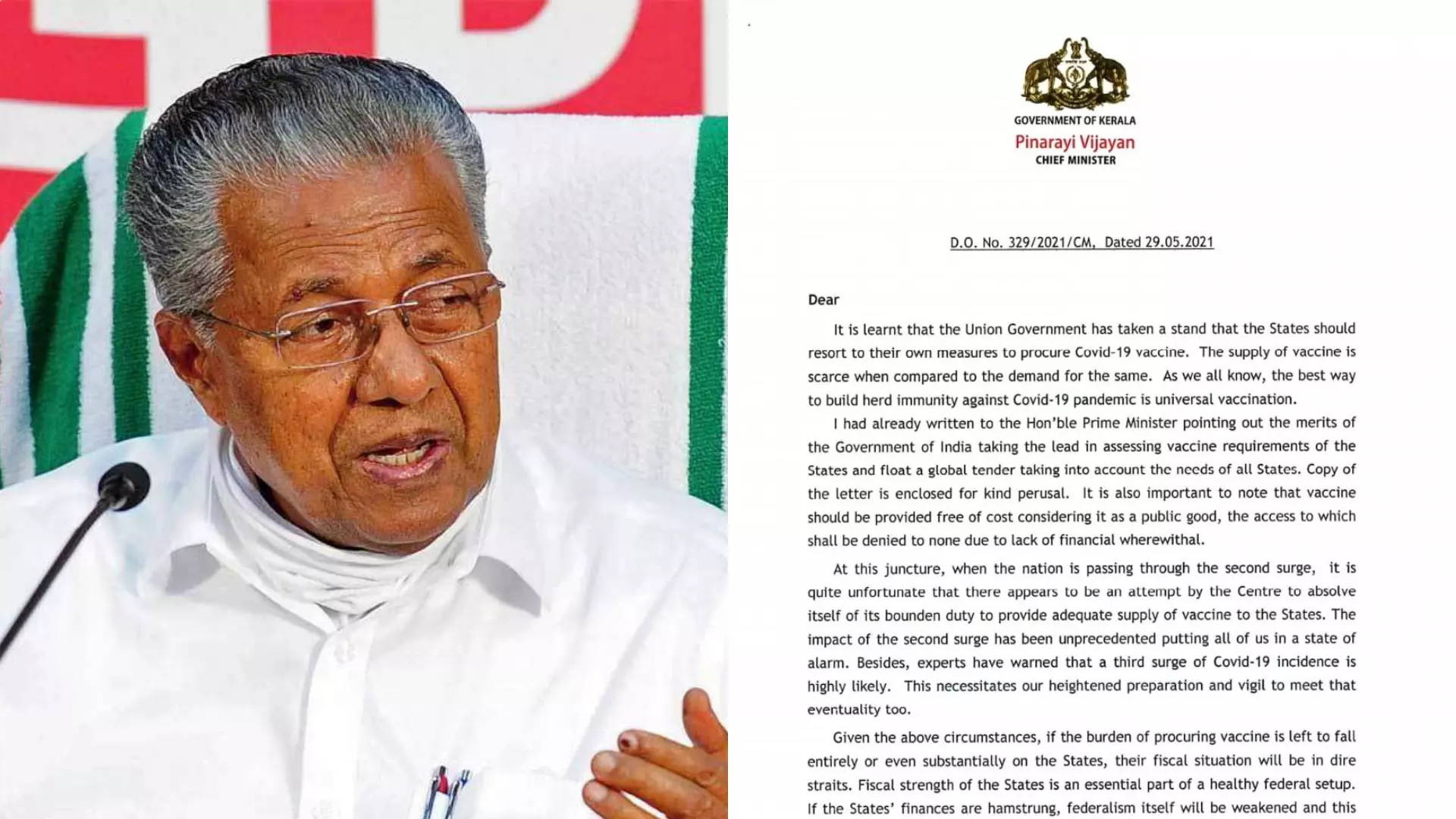 വാക്സിൻ ലഭ്യമാക്കുന്നതിന്റെ പൂർണ്ണ ഉത്തരവാദിത്തം സംസ്ഥാനങ്ങൾക്കാണ് എന്ന തരത്തിലുള്ള പ്രസ്താവനകൾ സഹകരണാത്മക ഫെഡറലിസത്തിന്റെ അടിസ്ഥാന സങ്കല്പങ്ങളെ തന്നെ വെല്ലുവിളിക്കുന്നതാണ്. ഈ ഘട്ടത്തിൽ ഏറ്റവും അനിവാര്യം ആയിട്ടുള്ളത് സംസ്ഥാനങ്ങൾക്ക് ആവശ്യമായ അത്രയും വാക്സീൻ കേന്ദ്രം നേരിട്ട് സംഭരിച്ച് സൗജന്യമായി വിതരണം ചെയ്യണം എന്ന സംസ്ഥാനങ്ങളുടെ ന്യായമായ ആവശ്യം സംയുക്തമായി മുന്നോട്ടുവെക്കുക എന്നതാണ്. ഇത് ചെലവ് കുറയ്ക്കുകയും ചെയ്യുമെന്ന് മുഖ്യമന്ത്രി കത്തില് സൂചിപ്പിച്ചു.