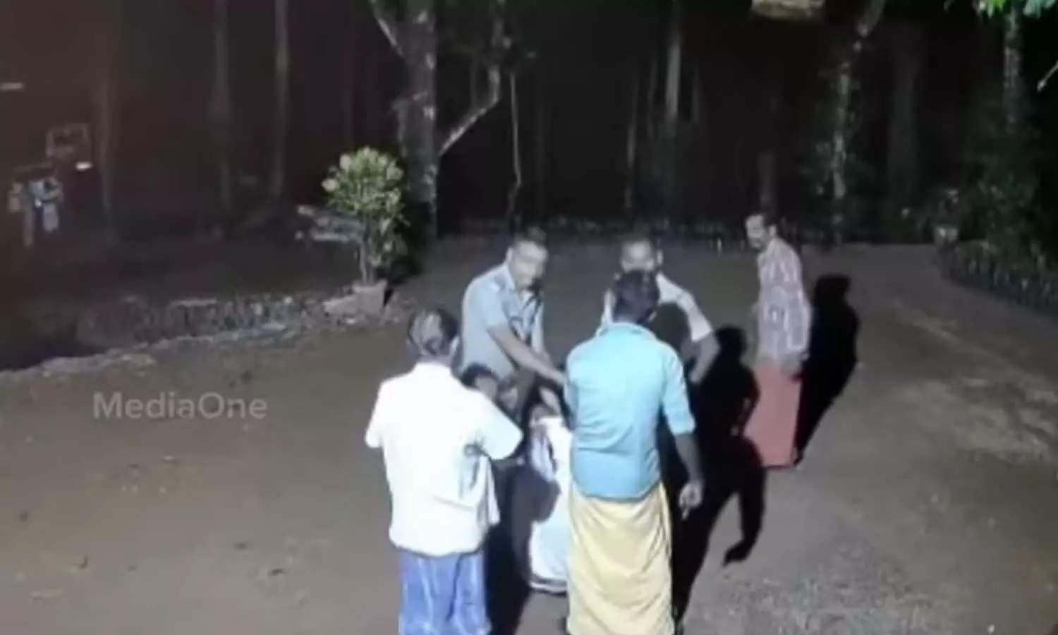 കോട്ടയം: അയൽക്കാർ തമ്മിലുള്ള തര്ക്കത്തെ തുടര്ന്ന് പരാതി അന്വേഷിക്കാന് എത്തിയ പൊലീസ് വീട്ടുജോലിക്കാരനെ വലിച്ചിഴച്ചുകൊണ്ടുപോയതായി ആക്ഷേപം. ഭരണങ്ങാനം സ്വദേശി കെ.ടി തോമസിന്റെ വീട്ടിലെ ജോലിക്കാരനായ ബാബുവിനെ വലിച്ചിഴച്ചു കൊണ്ടുപോകുന്ന സിസിടിവി ദൃശ്യങ്ങളാണ് പുറത്തുവന്നത്.