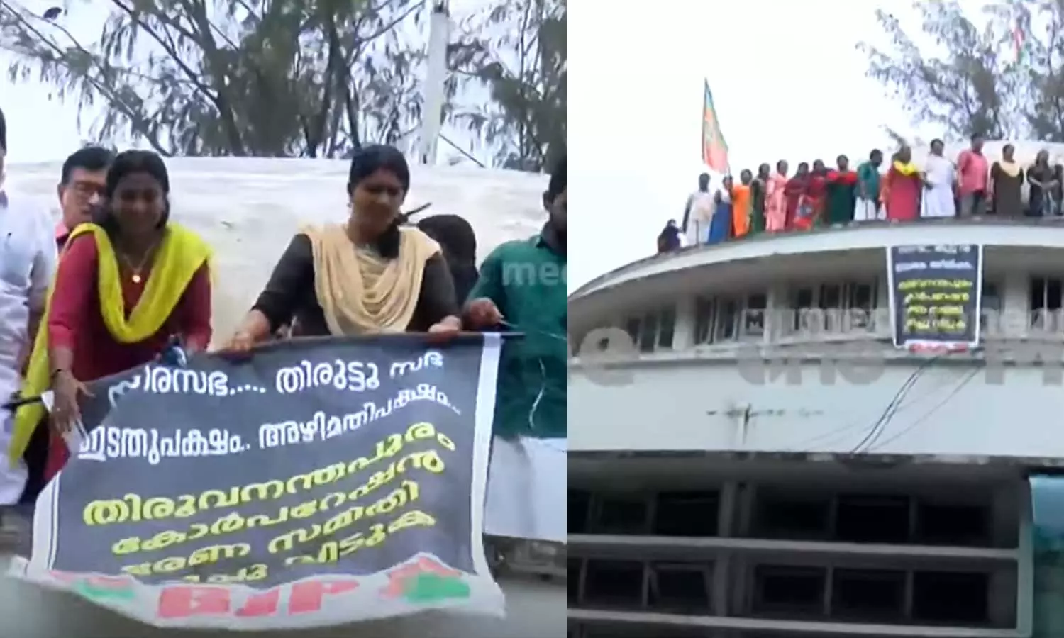 നഗരസഭാ കെട്ടിടത്തിന് മുകളിൽ ബി.ജെ.പി കൗൺസിലർമാർ, കാറിൽ കരിങ്കൊടി: മേയർക്കെതിരെ പ്രതിഷേധം ശക്തം