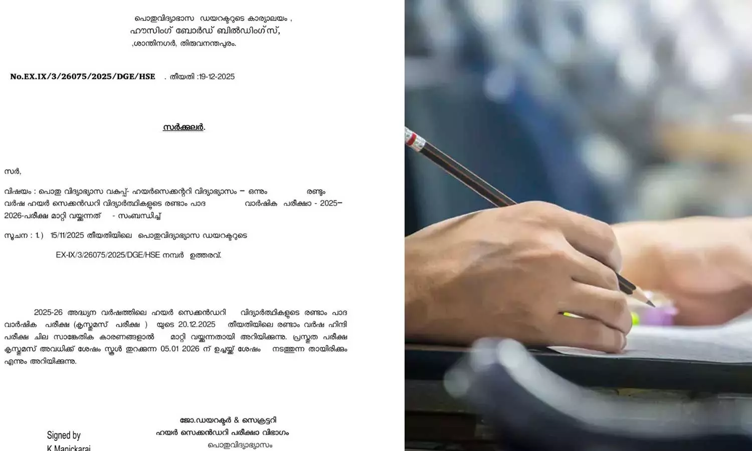 മാറ്റിവെച്ച പരീക്ഷ 2026 ജനുവരി അഞ്ചിന് നടക്കും
