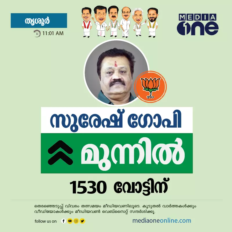 മഞ്ചേശ്വരത്ത് യു.ഡി.എഫിന്റെ എ.കെ.എം അഷ്റഫ് 2073 വോട്ടിന് ലീഡ് ചെയ്യുന്നു. കെ. സുരേന്ദ്രന് രണ്ടാംസ്ഥാനത്ത്.