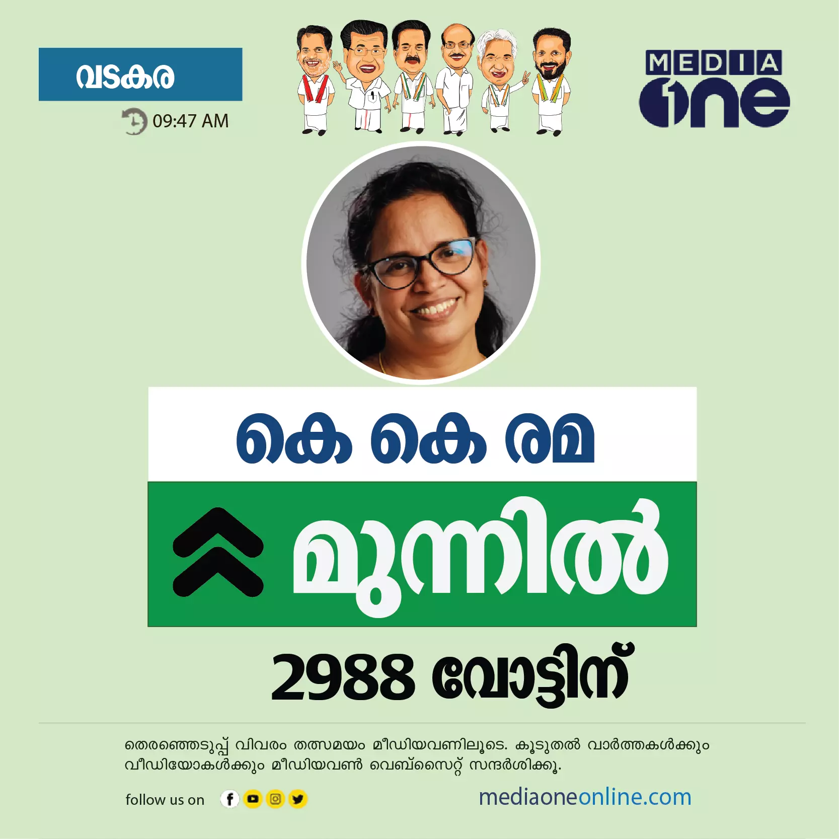 എലത്തൂർ മണ്ഡലത്തില് മന്ത്രി എ.കെ ശശീന്ദ്രൻ (എൻസിപി) -4087 വോട്ടിന് മുന്നില്