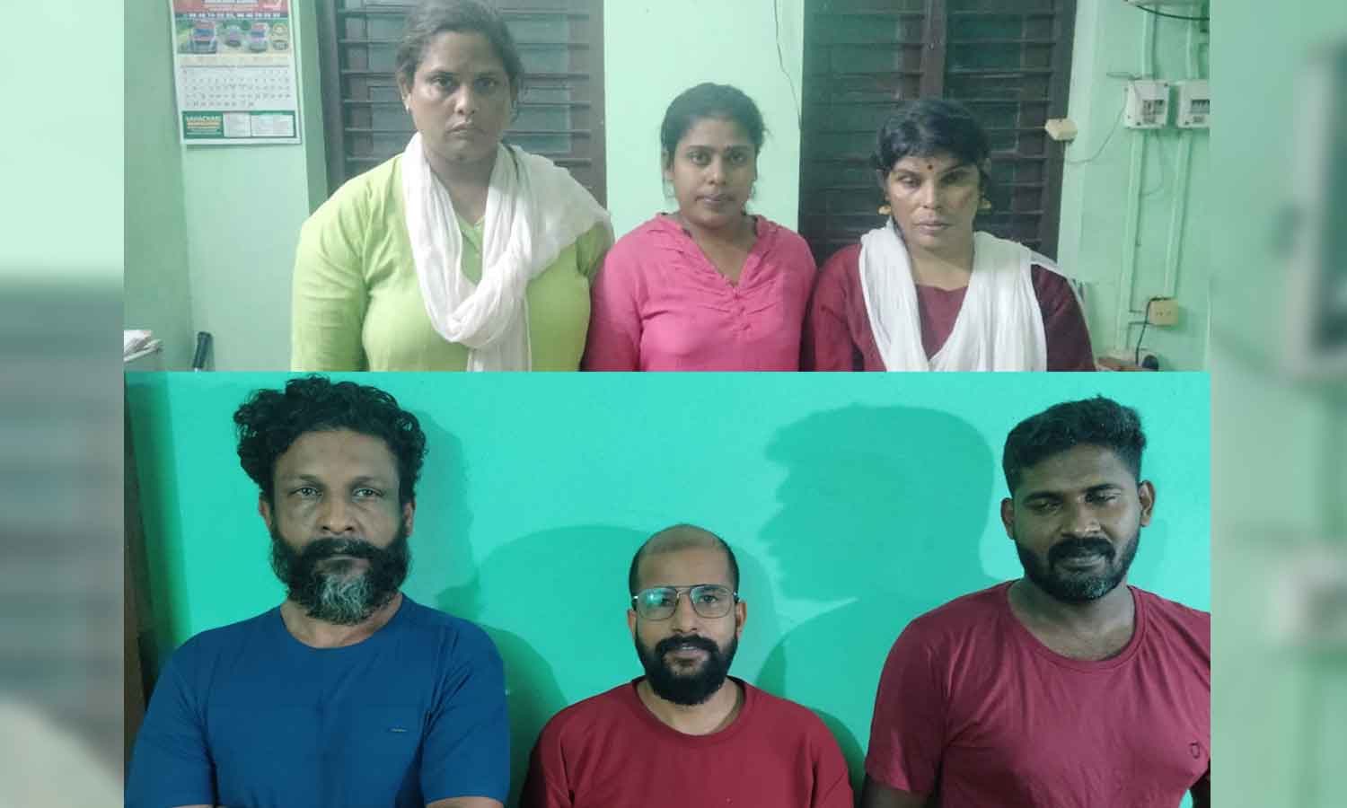 മൂന്ന് പുരുഷന്മാരും മൂന്ന് സ്ത്രീകളുമാണ് പിടിയിലായത്.