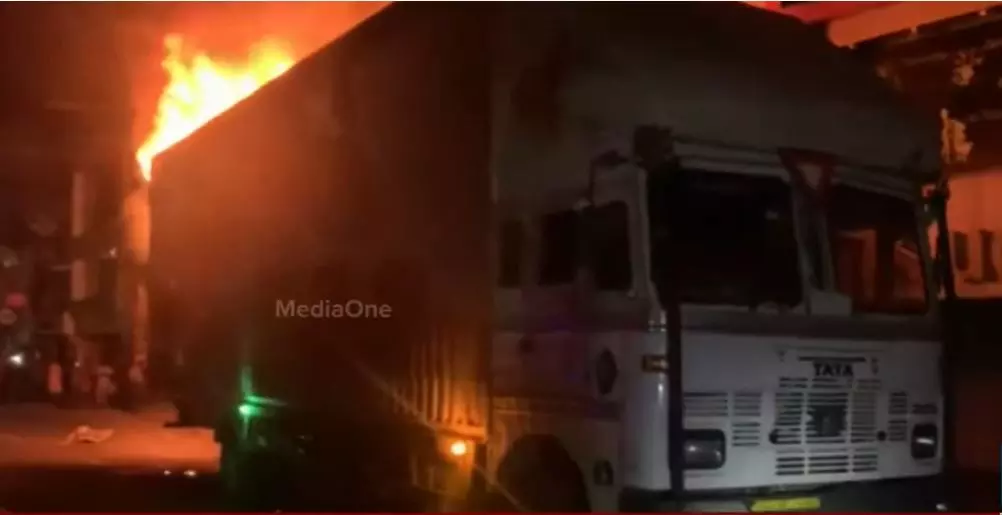 മലപ്പുറത്ത് ഓടിക്കൊണ്ടിരുന്ന കണ്ടെയ്നർ ലോറിക്ക് തീപിടിച്ചു