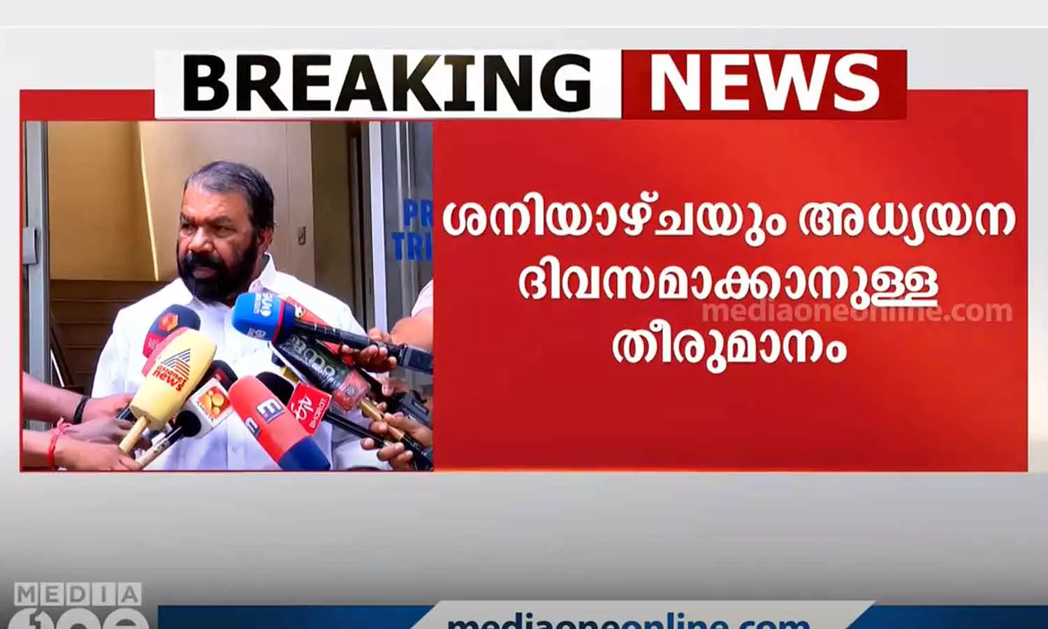 Read Alsoശനിയാഴ്ച അധ്യയന ദിവസമാക്കാനുള്ള തീരുമാനത്തിൽ മാറ്റമില്ല: വിദ്യാഭ്യാസ മന്ത്രി