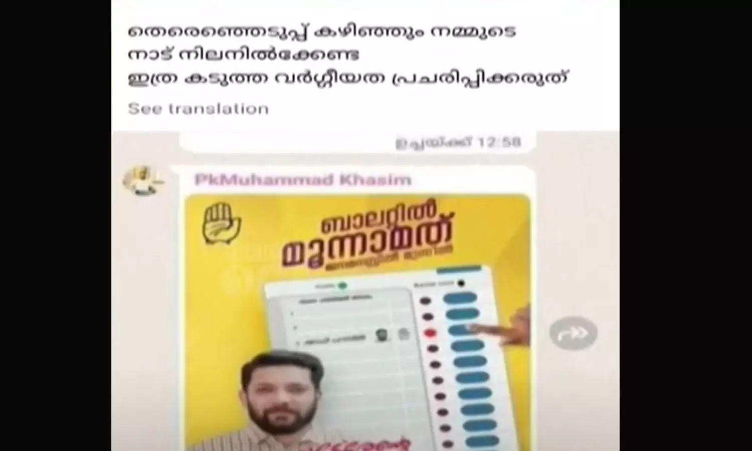 എംഎസ്എഫ് ജില്ലാ നേതാവായ കാസിമിന്റെ പേരിൽ വ്യാജ ഐഡിയും ഗ്രൂപ്പുമുണ്ടാക്കി വർഗീയ പോസ്റ്റുകളിടുകയും ഇത് യുഡിഎഫിന്റെ തലയിൽ കെട്ടിവയ്ക്കുകയും ചെയ്യുകയാണെന്നാണ് യുഡിഎഫ് ആരോപിക്കുന്നത്. ഇതിനെതിരെ റൂറൽ എസ്പിക്ക് യുഡിഎഫ് പരാതി നൽകുകയും ചെയ്തിട്ടുണ്ട്. മുൻ എംഎൽഎ കെകെ ലതിക ഉൾപ്പടെയുള്ളവർ പോസ്റ്റ് പ്രചരിപ്പിക്കുകയാണെന്നും യുഡിഎഫ് പരാതിയിൽ പറയുന്നു.