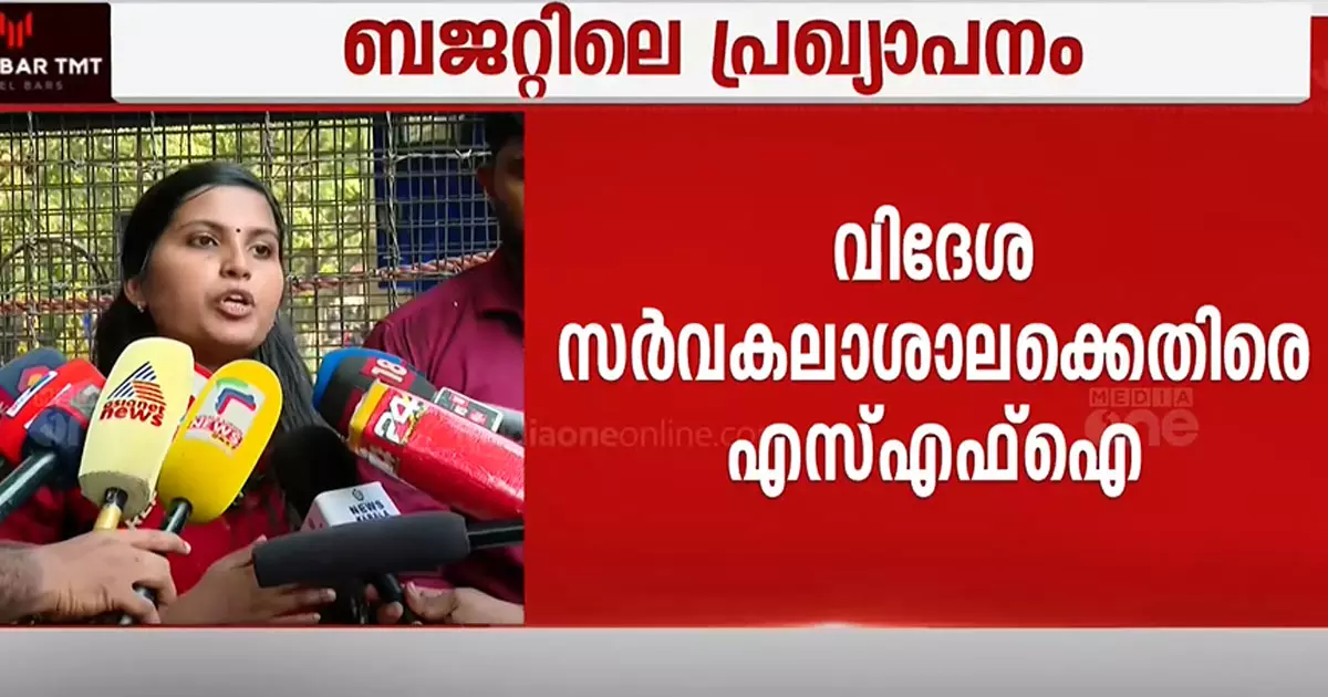 ബജറ്റിലെ വിദേശ സർവകലാശാലാ പ്രഖ്യാപനം അംഗീകരിക്കാൻ കഴിയില്ല: എസ്.എഫ്.ഐ