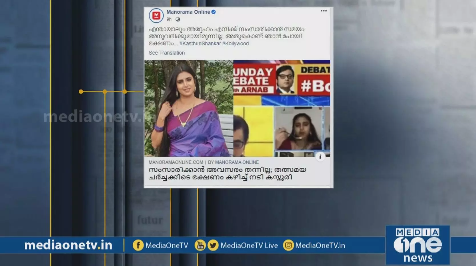 എ.ബി.പി ചാനലിലെ ചര്ച്ചക്കിടെ അതിഥിയുടെ പുകവലിയും അര്ണബിന്റെ ചര്ച്ചയില് നടി കസ്തൂരിയുടെ ഭക്ഷണം കഴിപ്പും.