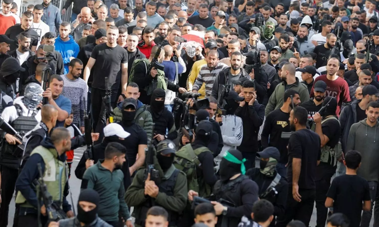 മഹ്മൂദിന്റെ ഭൗതികശരീരം - ഫലസ്തീൻ പതാകയിൽ പൊതിഞ്ഞ് - ഓറഞ്ച് സ്ട്രെച്ചറില് ജെനിനിലെ തെരുവുകളിലൂടെ ഉയര് ത്തിക്കൊണ്ടുപോയി.