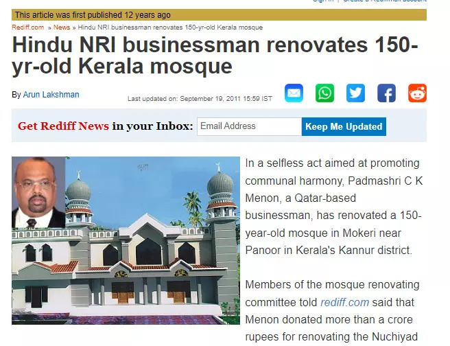 | മൊകേരി പള്ളി പുനര്നിര്മാണം സംബന്ധിച്ച് റെഡിഫ് ഡോട്കോമില് വന്ന വാര്ത്ത