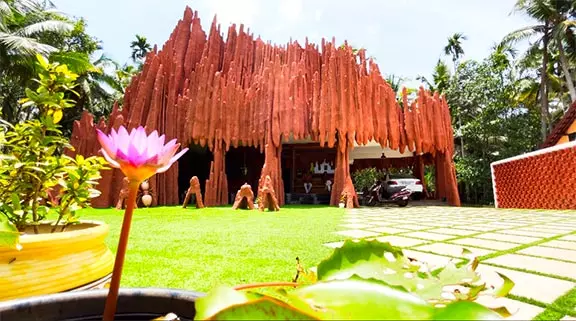 ചിതലിനു മാത്രമല്ല പുറ്റ് കൊണ്ട് വീട് നിര്മിക്കുവാന് സാധിക്കുക, മനുഷ്യനെക്കൊണ്ടും കഴിയും. പക്ഷേ, ചിതല്പ്പുറ്റ് മാതൃകയിലാണെന്ന് മാത്രം. കണ്ടാല് ഒരു കൂറ്റന് ചിതല്പ്പുറ്റ് എന്ന് തോന്നുമെങ്കിലും സംഭവം ഒരു ഗംഭീര വീടാണ്. കാണുന്നവരെല്ലാം ഏറെ കൗതുകത്തോടെയാണ് ഈ വീടിനെ നോക്കി കാണുന്നത്. നേരിട്ടൊന്ന് കാണാനും അടുത്ത് ചെന്ന് ഒന്ന് തൊട്ടു നോക്കാനും ഇവിടെ എത്തുന്ന ആളുകള് ഏറെയാണ്. വീട് പണിത് തുടങ്ങിയപ്പോള് രണ്ട് ഭ്രാന്തന്മാര് എന്തൊക്കെയോ കാണിച്ചു കൂട്ടുന്നു എന്നായിരുന്നു ചുറ്റുമുള്ള സംസാരം. പരിഹാസത്തോടെ കളിയാക്കി ചിരിച്ചവരും, ഒപ്പം നിന്നവരും ഉണ്ടായിരുന്നു.